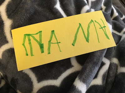 I have no idea when or how he learned, but Elliott can write all his letters now, and that is also fabulous. Yesterday he decided to write each member of the family's name on a strip of paper and then tape them up on the fireplace. As much as I sometimes pine for my babies, I adore seeing these new skills blossom in my getting-big boys.