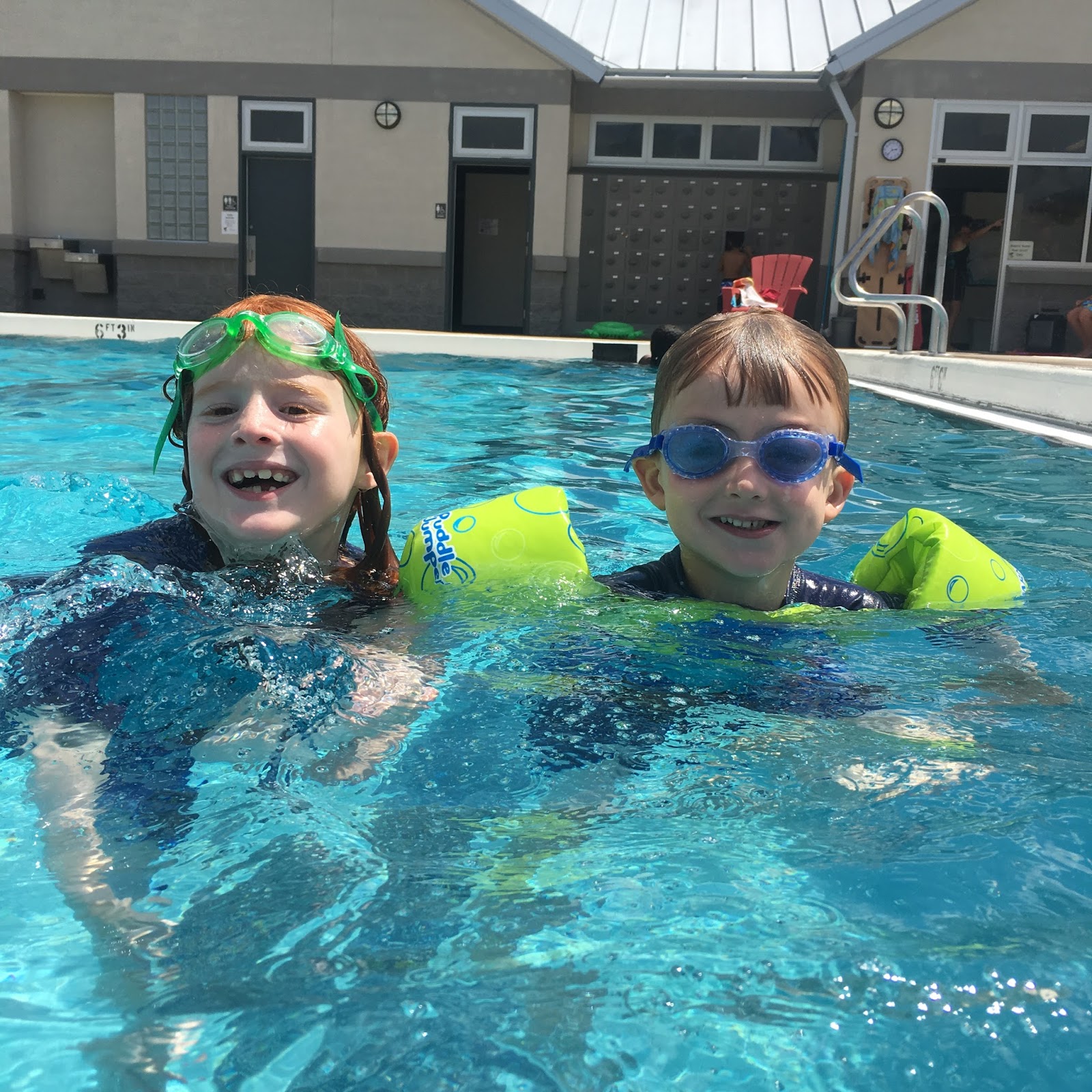 Judging by today, I think we have suddenly arrived at the sweet spot of near-independent pool children. Nico spent most of his time going on the big waterslide over and over, and he's finally a confident enough swimmer that I was happy to let him go on his own to the deep side. As soon as we arrived, Elliott strapped on his puddle jumper, put on his goggles, and flung himself into the 6' end to paddle across with his brother, so I guess he's got this. Alas, he was less than half an inch too short to go on the big slide. Maybe next year, my son! We're swimming there again tomorrow, and I think I will have to take them at least once more before school starts. (Though just now I realized how few weekends are left before school starts and I OBJECT. MORE SUMMER WITH MY WATER BABIES, PLEASE.)